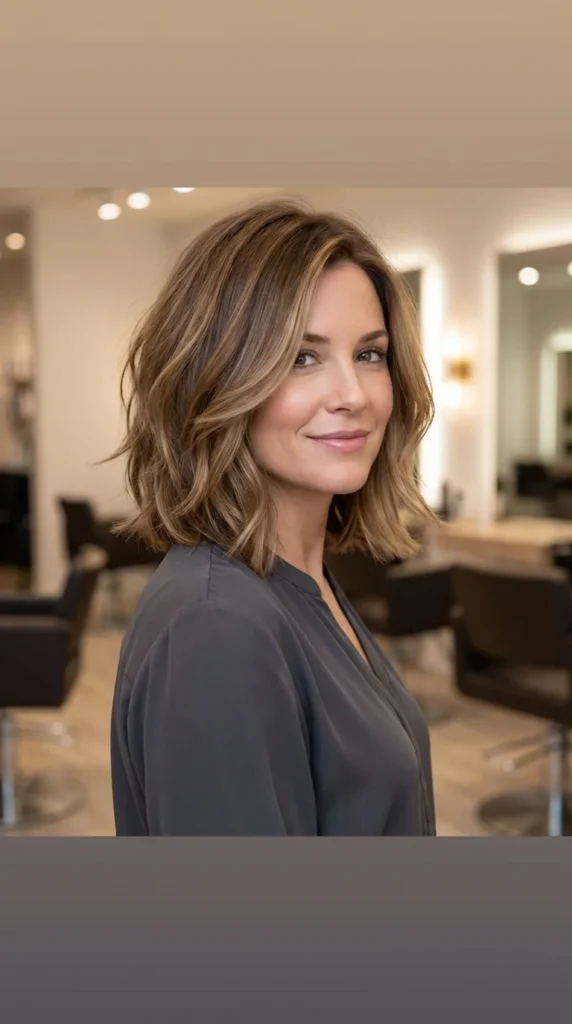 A layered lob is a great choice for square face shapes. The length sits perfectly between short and long hair. Layers help soften the jawline and cheeks. This style adds shape without looking heavy. It works well for straight and wavy hair. The lob is easy to style and manage. It looks modern and fresh. The cut gives a clean and balanced appearance.